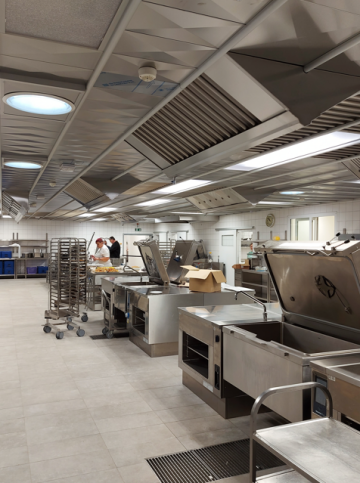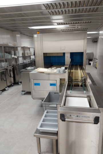 Technologickou perlou je unikátní velkokapacitní myčka nádobí, druhá svého druhu v České republice. Spolu s dalšími moderními zařízeními zefektivní práci personálu a přinese úspory provozních nákladů. Dispoziční řešení navíc respektuje správnou výrobní praxi a zajišťuje bezpečný a plynulý chod celého provozu.
